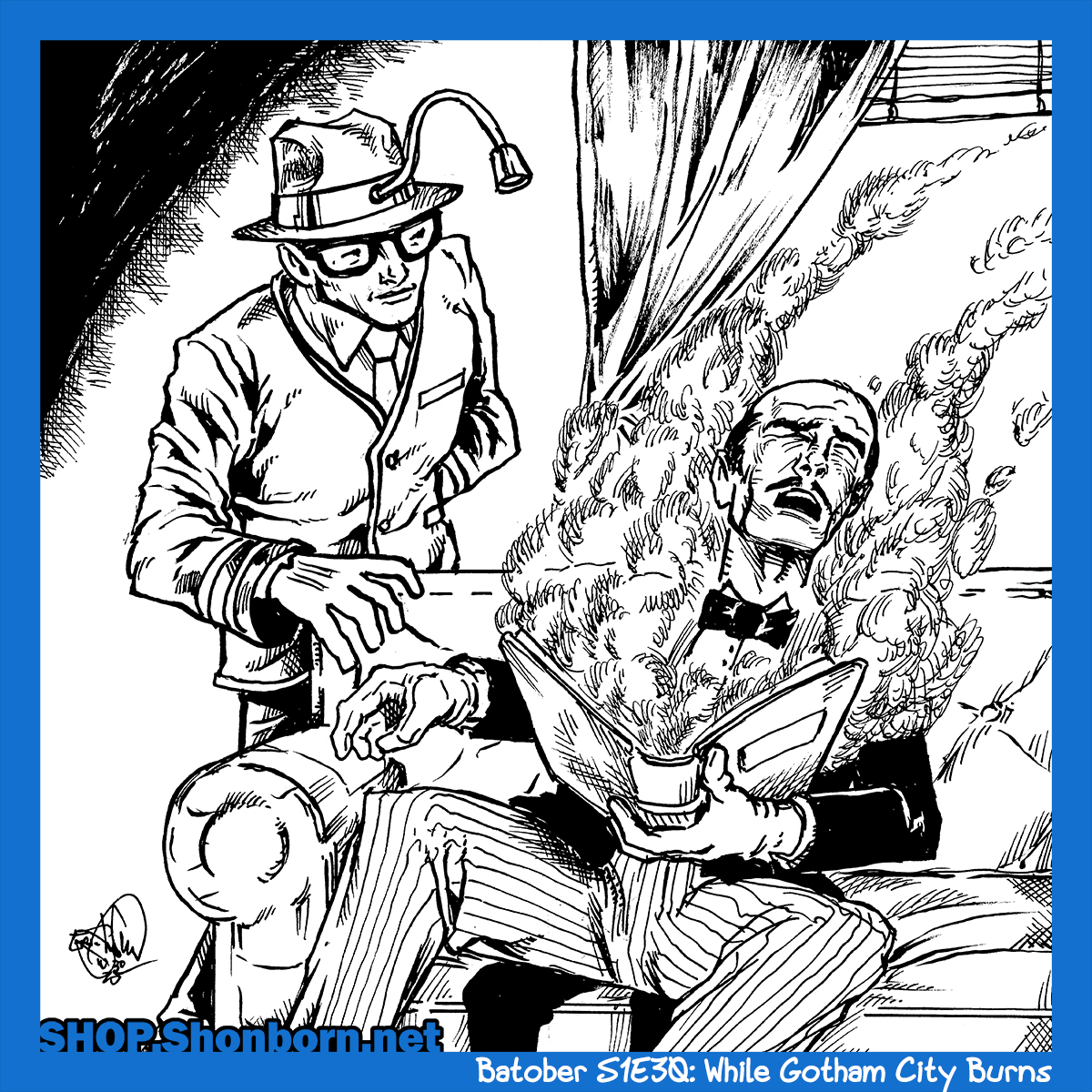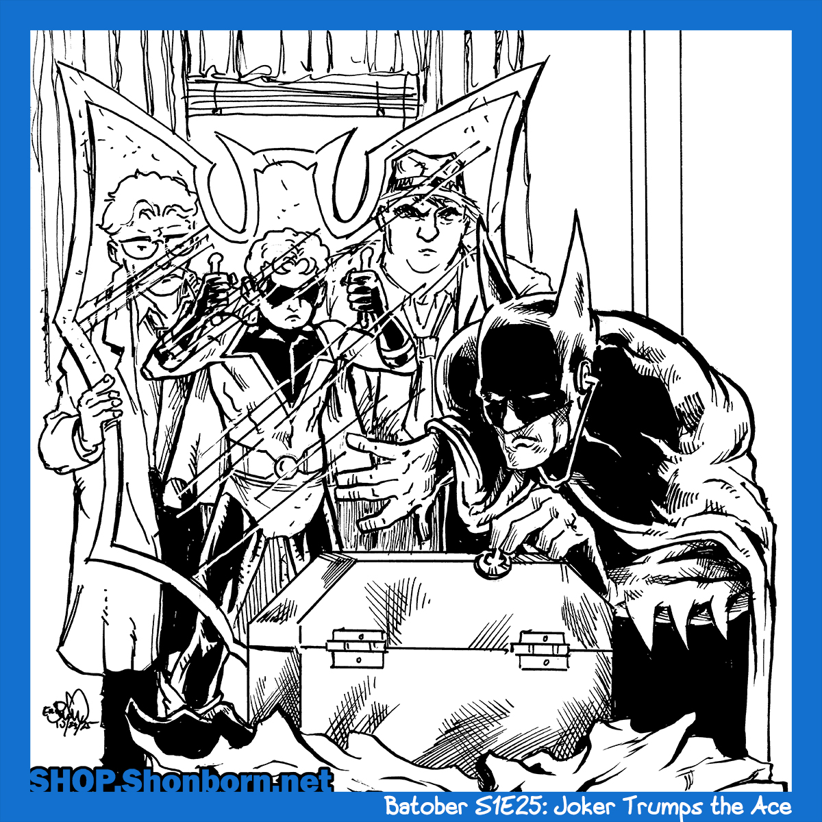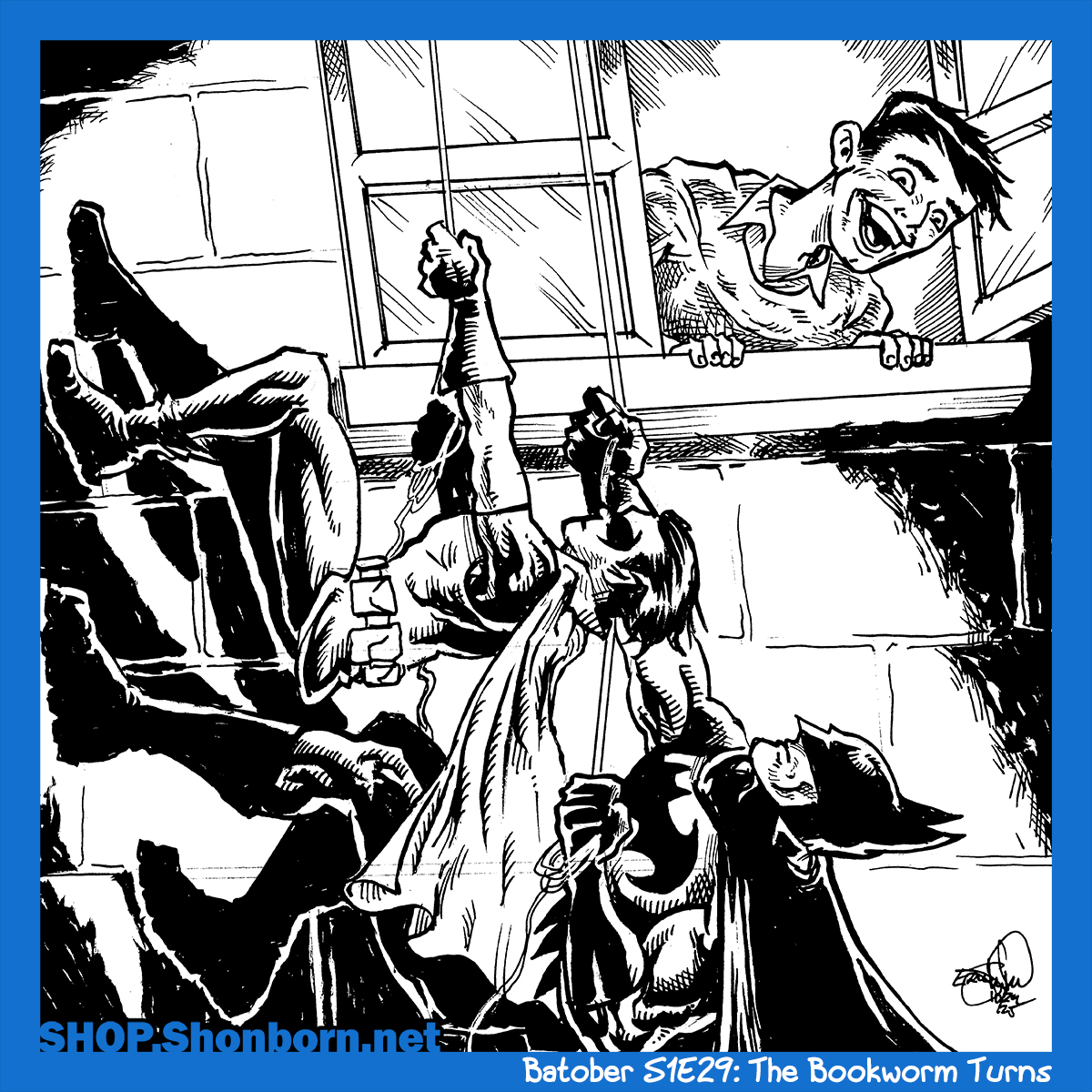 This episode features the very first celebrity wall-climb cameo. I had a couple ideas of scenes for this one, but my committee all agreed I should draw the wall-climb. Luckily, the celebrity in question was none other than Jerry Lewis! Since I am doing comic-only versions of the characters (where I can), it was very fortunate that Jerry Lewis had his own DC Comic throughout the 60s, and even met Batman! So, comic-accurate Jerry Lewis, step right up!