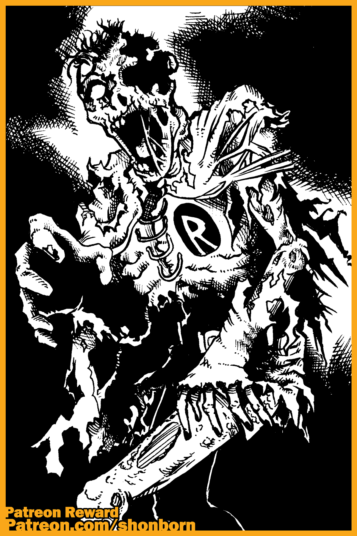 Apparently inspired by my “Robin Lives” sketch cover, the patron requested an undead Jason Todd. Happy to do it. HAPPY.