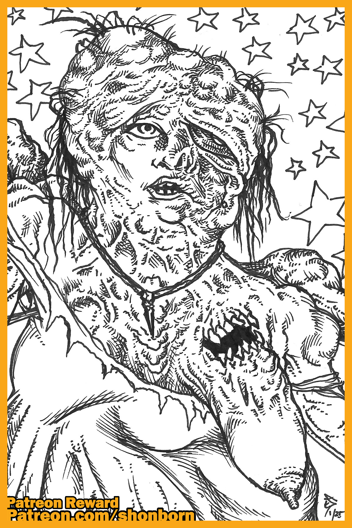 I struggled with this one for a while. Then I sorta realized, it didn’t need to be 100% movie accurate. Just an approximation of what Monstro ElisaSue looks like and then I felt free and happy to draw this wonderful, beautiful, hot-as-fuck woman. Happy New Year!