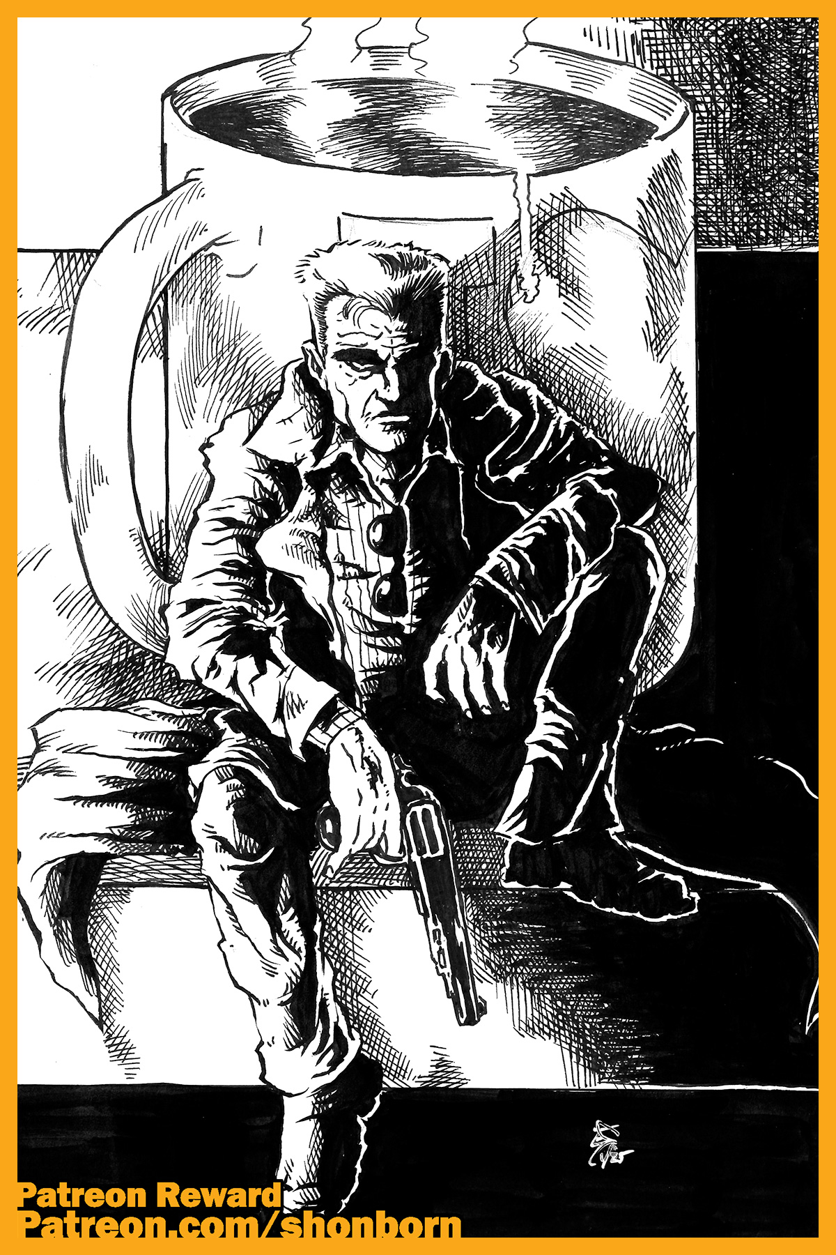 Asked to draw Dollman, from the Full Moon motion picture Dollman, directed by legendary filmmaker Albert Pyun. And here I am once again drawing perpetual 78 year old Tim Thomerson. After drawing this, I decided to watch the movie, as it is a blindspot. It’s… not great.